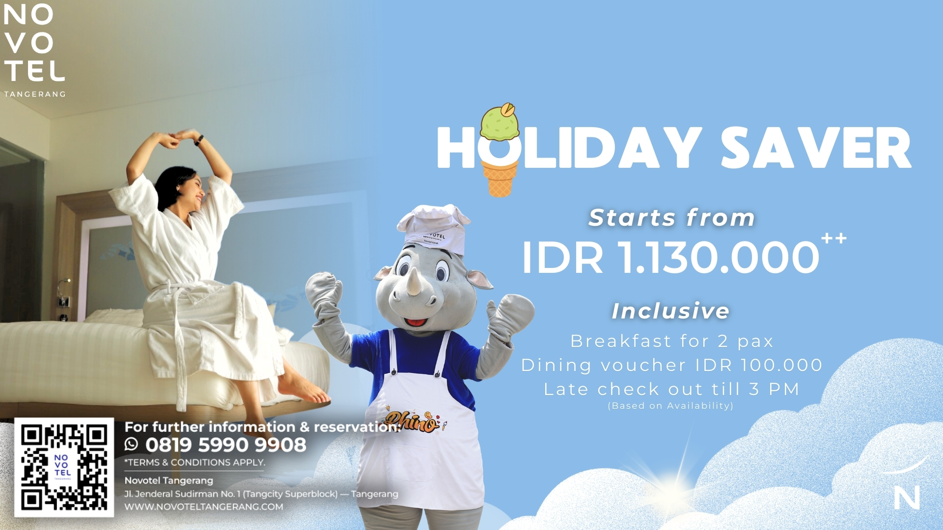 Rasakan kenyamanan di Novotel Tangerang, hotel yang cocok untuk bisnis hingga berlibur. Terletak di pusat Kota Tangerang dengan keunikan persilangan budaya lokal dan peranakan menjadikan hotel Novotel Tangerang ini sebagai destinasi yang tepat.